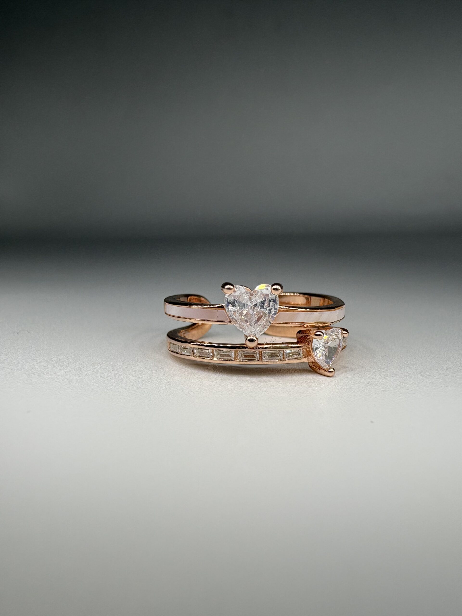 This Twin Heart CZ Ring blends romance with modern elegance through its layered design and heart-shaped stones. Designed in US Size 6 with an adjustable fit, it offers both comfort and versatility — perfect for everyday wear or meaningful gifting.