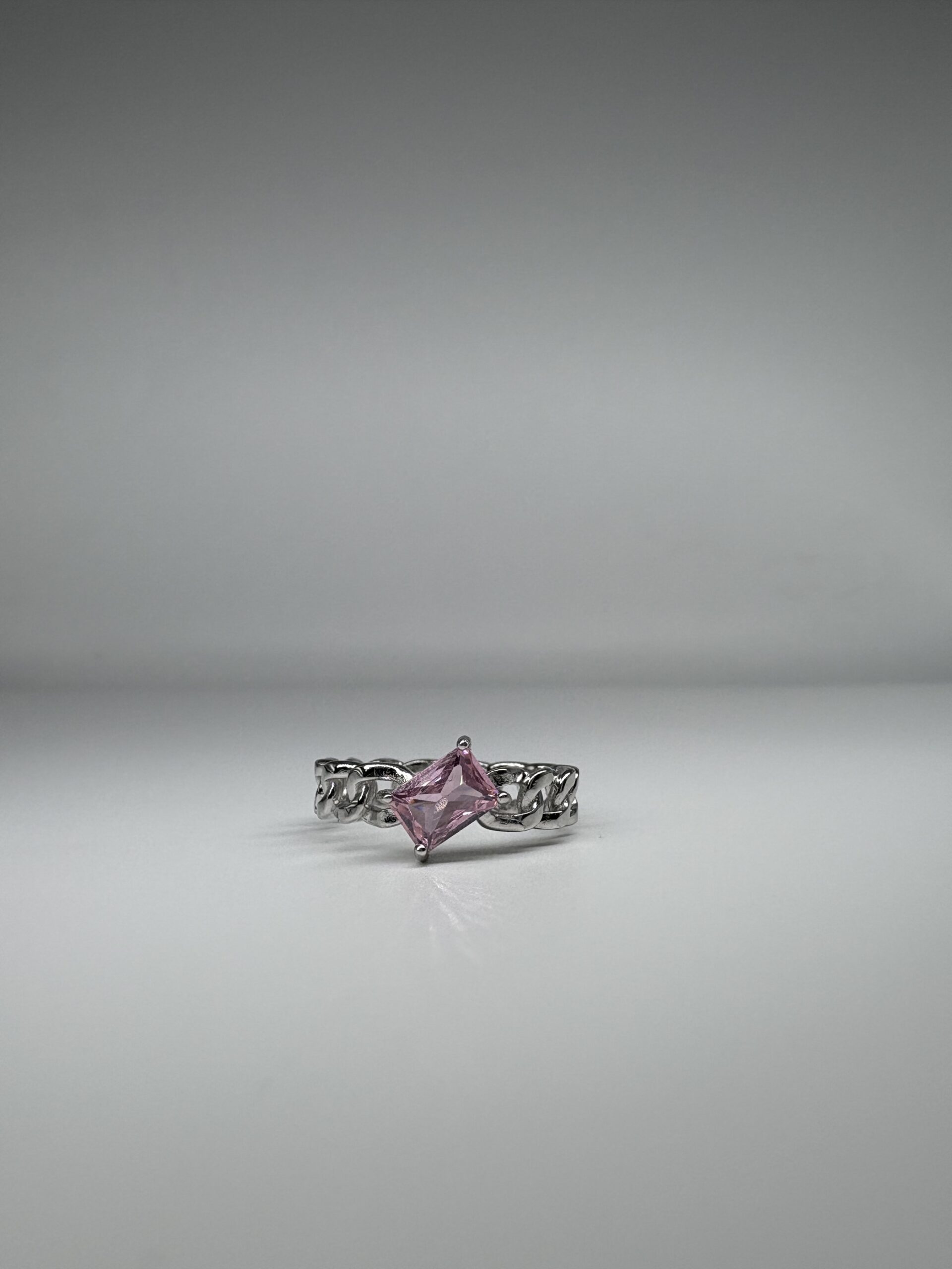Add a pop of playful elegance with our Pink Prism Chain Ring, crafted in pure 92.5 Sterling Silver . The bold princess-cut pink zirconia sparkles brilliantly against the trendy chain-link band, making it perfect for stacking or wearing solo. Chic, lightweight, and full of personality — it’s a ring that speaks your style