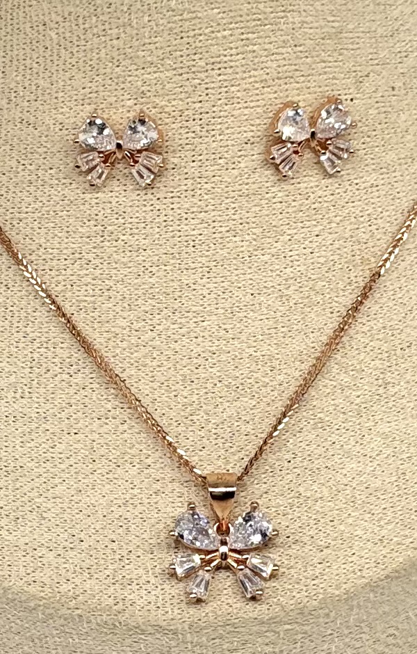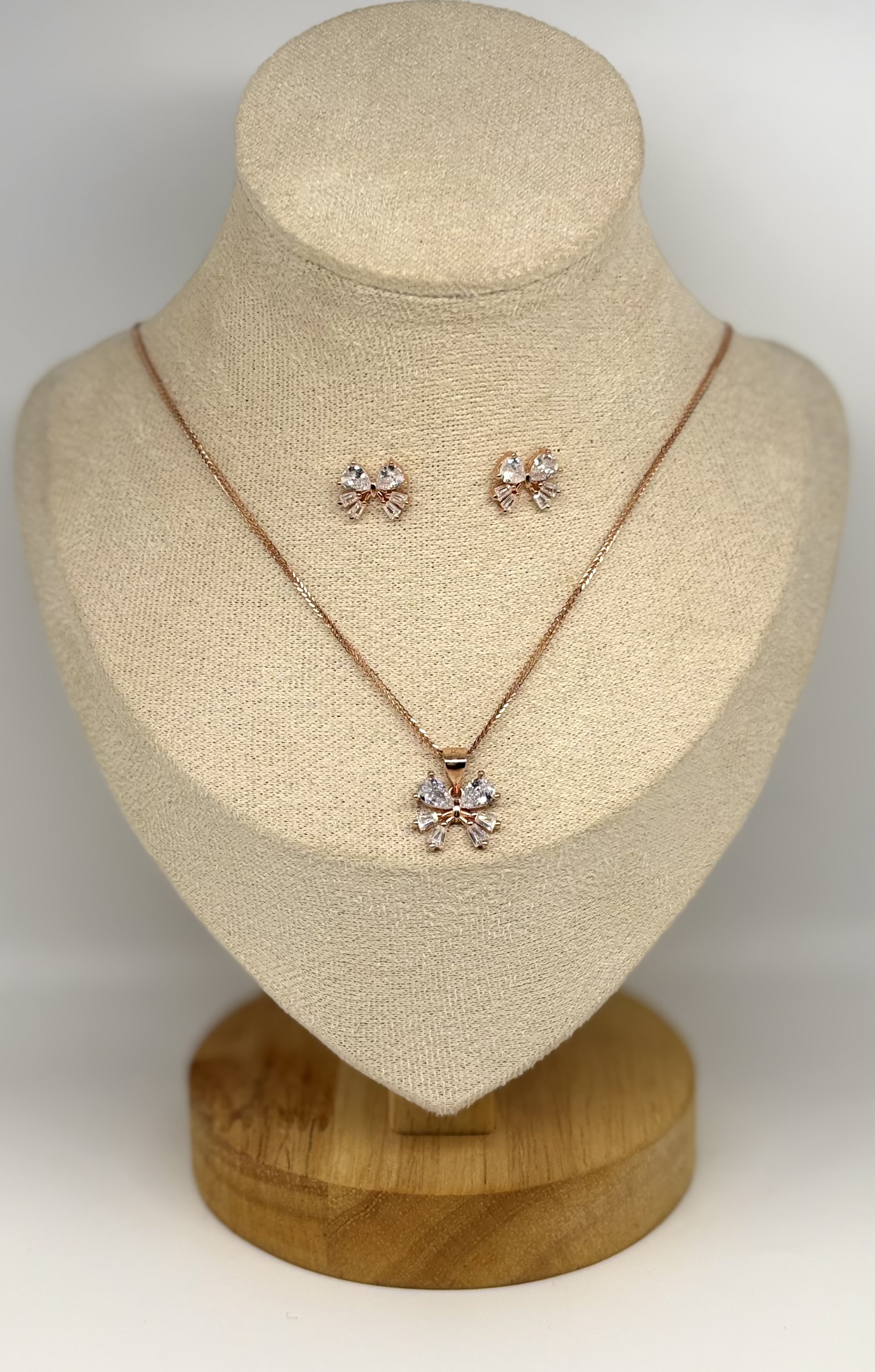 The Crystal Bloom Set is a delicate yet dazzling addition to your jewellery collection. Handcrafted in sterling silver with a rose gold finish, it features a blooming floral-inspired pendant paired with matching studs, both adorned with shimmering zircon stones. A timeless piece that beautifully balances charm and sophistication, making it perfect for special occasions or as a thoughtful gift