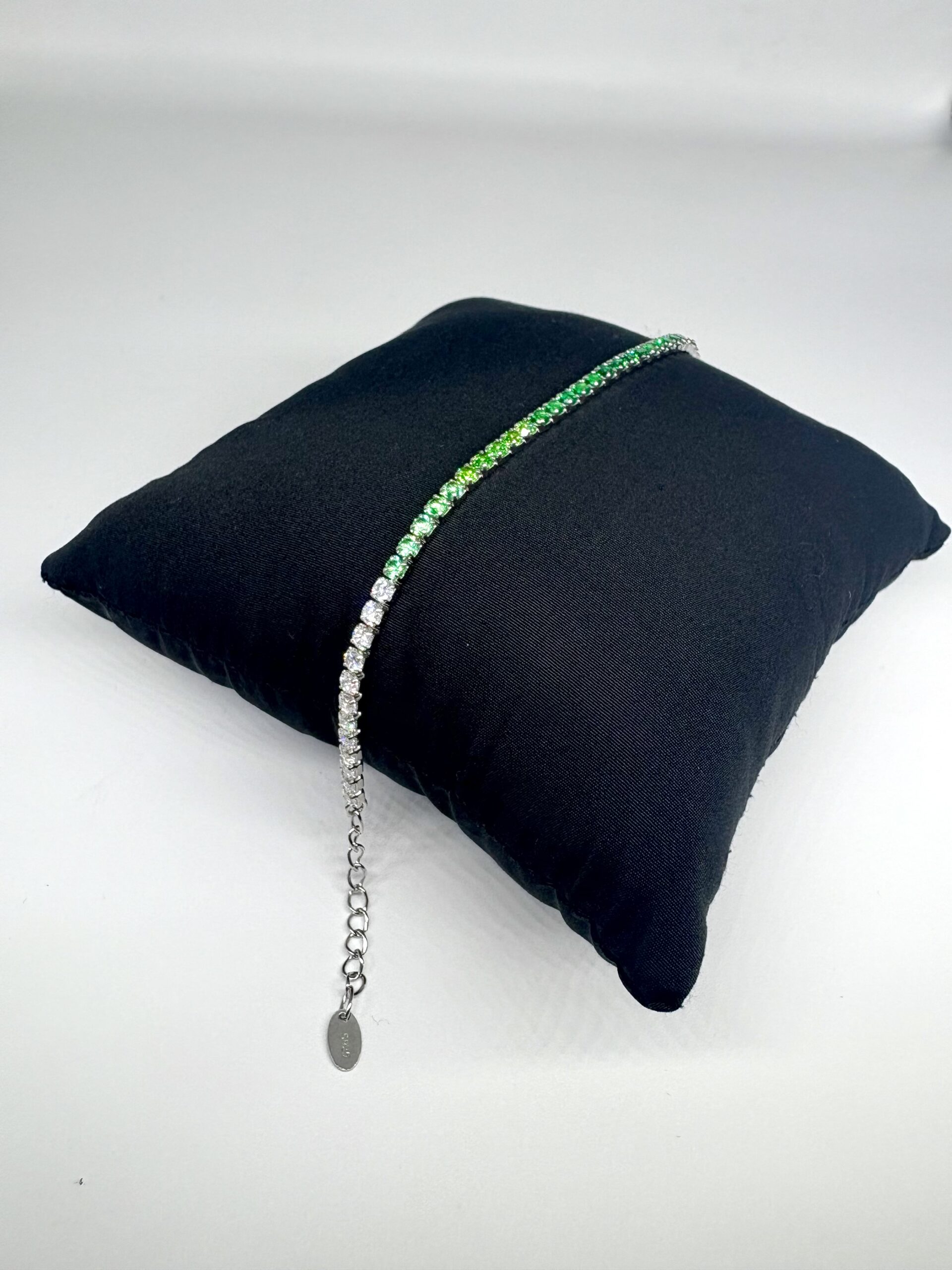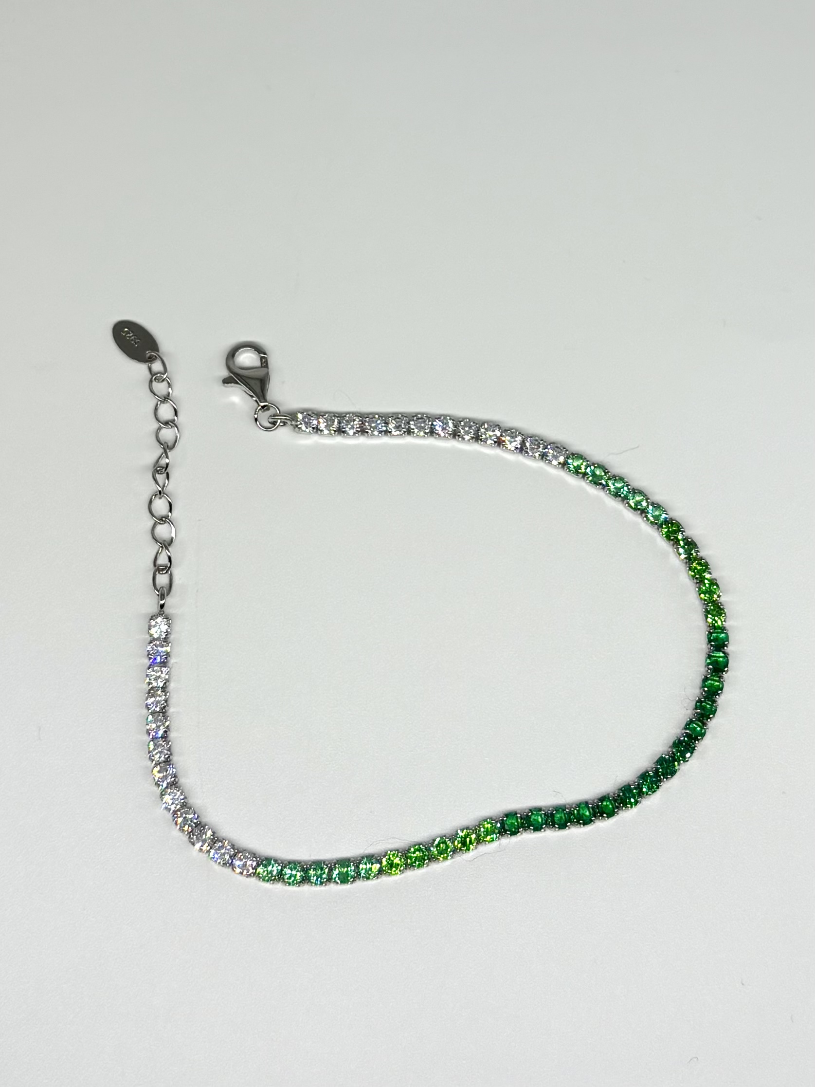 Design: Gradient tennis bracelet with shimmering white to deep green cubic zirconia